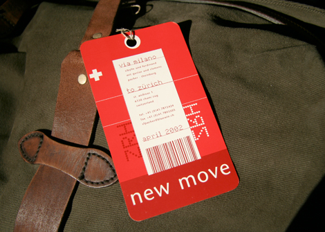 Luggage tag for a change of address announcement.